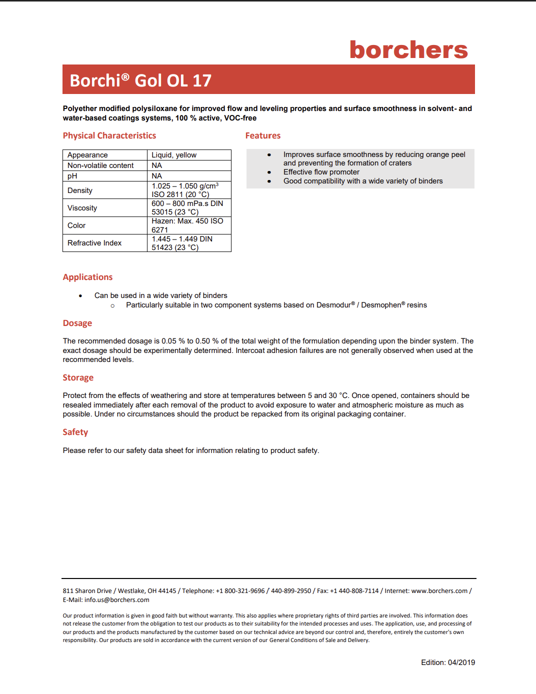| Viscosity | 600 – 800 mPa·s | DIN 53015 (23 °C) |